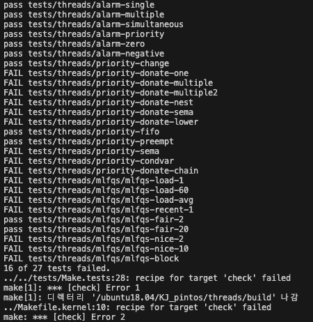 [목표]Priority Scheduling에 대해서 코드를 분석하고, 작성합니다. (진행중)본격적으로 donation을 구현합니다.09:55 ~ 10:30약간의 휴식10:30 ~ 12:00어제 내용 정리를 한번 보고 donation 구현 준비12:00 ~ 13:00랜덤런치 날이므로 다른 팀원분들과 식사를 진행 했습니다.13:30 ~ 16:30카이스트 Pintos 교수님 강의를 들었습니다. 자세한 내용은 다음 포스팅을 참고해주세요!16:30 ~ 18:00donaation을 구현하기 전에 세마포를 구현해야된다고 합니다. 그러므로 세마포어를 먼저 구현하도록 하겠습니다.synch에 대해서 모든 주석을 번역하고 분석하고 있습니다. 빠른 시일내에 세마포어를 구현해보겠습니다.18:00 ~ 19:00식사를 마치고 왔습..